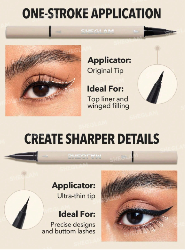 اگر به دنبال یک خط چشم حرفهای هستی که هم خط نازک بکشد هم خط چشم پهن و گرافیکی، خط چشم دو سر SHEGLAM Multi-Tasker Line & Detail Eyeliner بهترین انتخاب است.